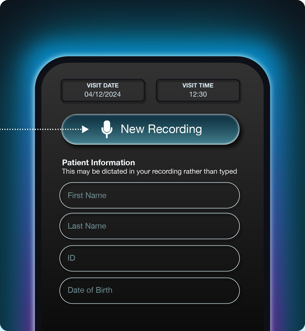 • 01 Press Record Before beginning your encounter, press ‘Record’ in your Speke app. The AI will ambiently listen to your consultation while you proceed as normal. Simply select ‘Stop’ to end the recording and generate your note.