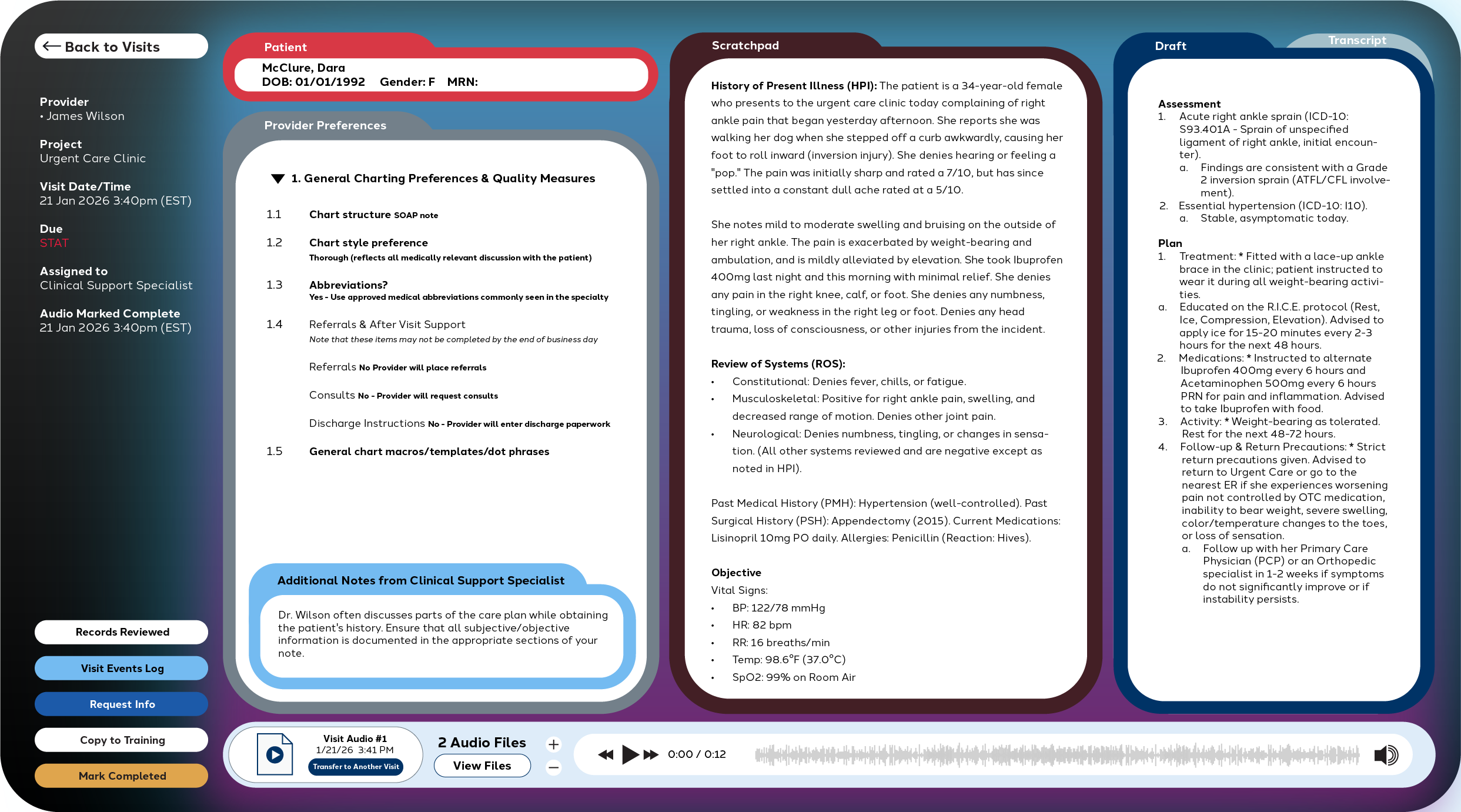 Speke AI Pro brings providers the AI and workflow advantages of Speke AI Express and pairs it with note QA and live feedback loops with trained clinical support specialists for a customized experience that supports the provider at every step.